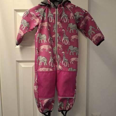 Koko merkitty 86, minusta sopii paremmin 80 - 86 cm kokoiselle. Haalari pituus 76 cm.