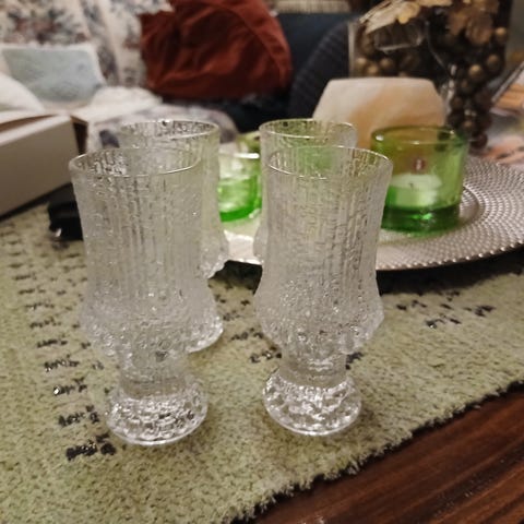 Iittala Ultima Thule -sarjan lasit, 6 kappaletta. Kirkas väri ja lasimateriaali. Sopivat juomien tarjoiluun.