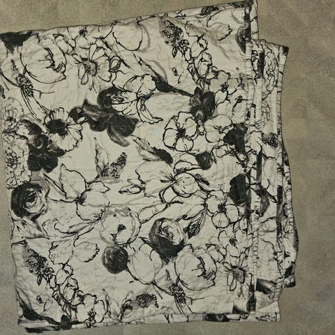 Valkea parisängyn päiväpeitto, hennolla kohokuvioinnilla. Ei tahroja tai kulumaa. Ei lemmikkitalous. Käy 160-180cm leveään parisänkyyn.