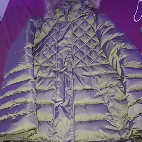 GUESS puolipitkä untuvatakki naisille, koko XXL, väriltään oliivin vihreä. Takki tarjoaa lämpöä ja mukavuutta kylmään säähän. Takissa on vetoketjullinen sulkeminen ja vyö, joka auttaa istuvuuden säätämisessä. Vyössä iso metalli solki. Malli on muotoja imarteleva tyköistuva, mutta silti mukava päällä. Hihat levenevät hihansuissa, mutta niissä on lisäksi resorit. Sisällä on 1 povitasku. Hupussa on upea karva. Huppu on irrotettavissa ja takissa on silti miellyttävä kaulus. Ulkomateeiaali on hieman kiiltävää ja paksua kangasta.