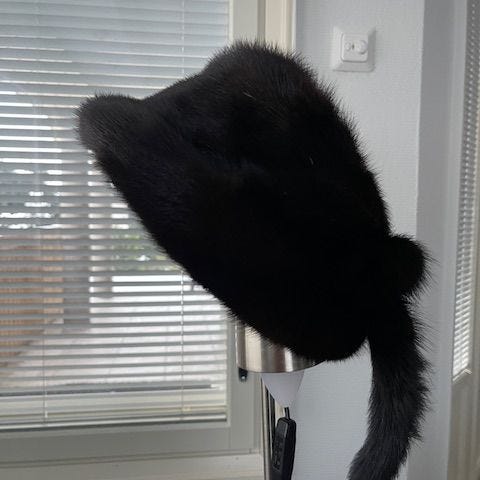 Minkki turkishattu (56) ja turkiskaulus, minkkihattu minkkikaulus