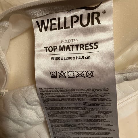 Wellpur T30 gold memory-vaahtomuovi petauspatja 180x200cm. Päällinen pestävä ja menossa vielä pesuun. Ostettu 2v sitten.