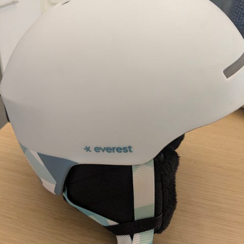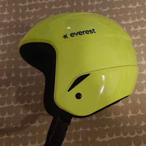 Kaksi siistiä lasten Everest-laskettelukypärää. Koko M, 56/57 cm. Meillä olleet käytössä alakoululaisilla, 7-12-vuotiailla. Toimivat monenlaisilla aluspipoilla tai ilman. Pehmeä ja miellyttävä sisus. Säilytetty kuivassa ja lämpimässä. Hajuttomat.