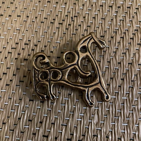 Kalevala Koru hevosenkenkäsolki rintakoru pronssia lahja uudenveroinen