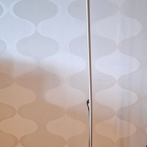 Kangas kiinnitetty ilmeisesti liimaamalla ja liima kellastunut (kuvat), mutta kellastumista lähinnä valaisimen sisäpuolella.
