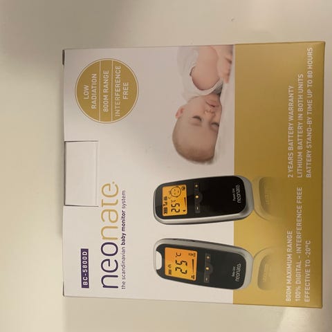 Neonate Basic itkuhälytin. Pitkä kantama, jopa noin 800 m. Vauvan kuulee siis vaikka toisessa päässä taloa. Vauvan yksikössä on himmeä yövalo. Mukana tulee käyttöopas ja virtalähde.