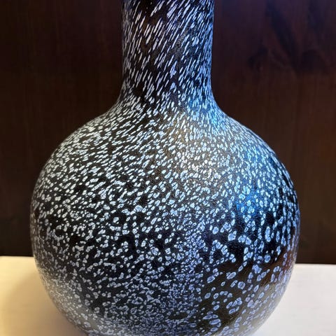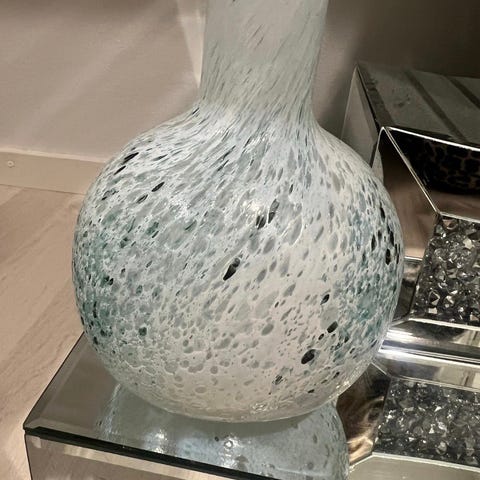 Nuutajärven Tunturissa koristepullo rospuutto. Signeerattu O.Toikka, Nuutajärvi. Viimeisessä kuvassa signeeraus, joka valkoisessa lasissa vaikea erottaa. Pullon korkeus 16 cm, paino 0.495kg. Väri valkoinen/kirjava. Suunnittelija Oiva Toikka,. Valmistettu vuosina1987-89. Sarja Tunturissa, rospuutto. Nouto/postitus.pk.ostajalle.