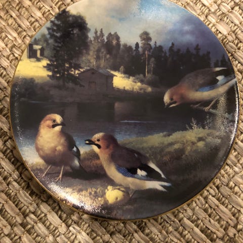 Hyväkuntoinen Arabia Von Wright seinälautanen nr. IX Peippopari pesällä.