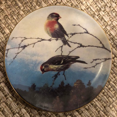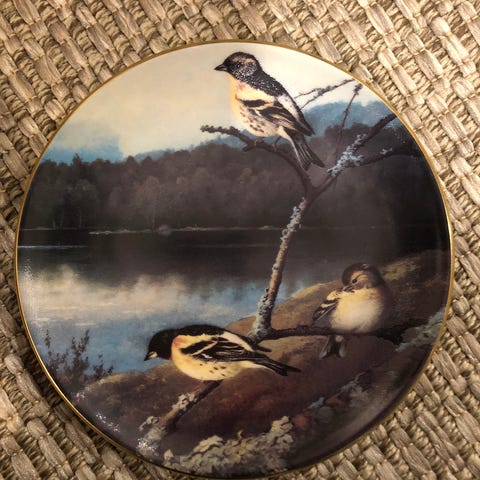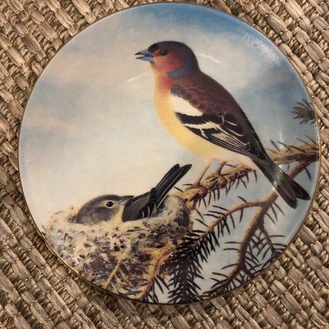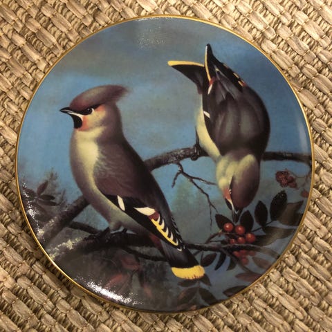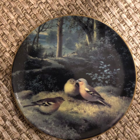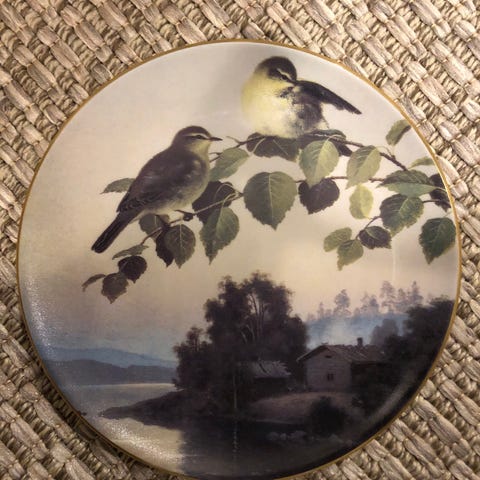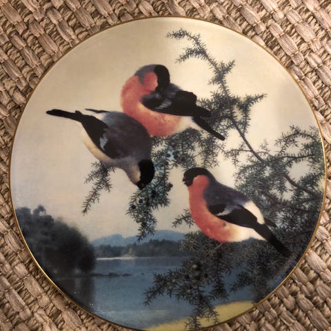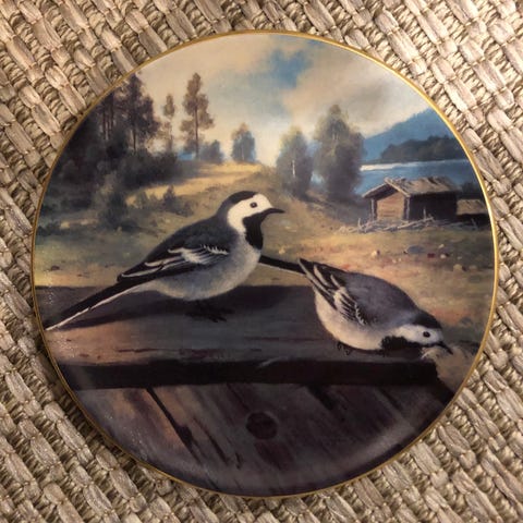 Hyväkuntoinen Arabia Von Wright seinälautanen nr. III Talitiaisia pihlajassa.