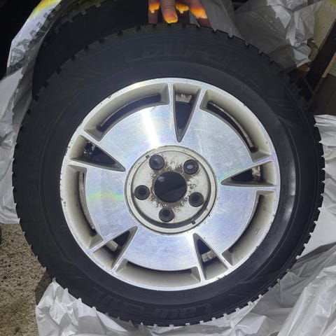 Käytetyt renkaat, jonkun verran pintaa jäljellä. Renkaat vanteineen ovat vanhat.