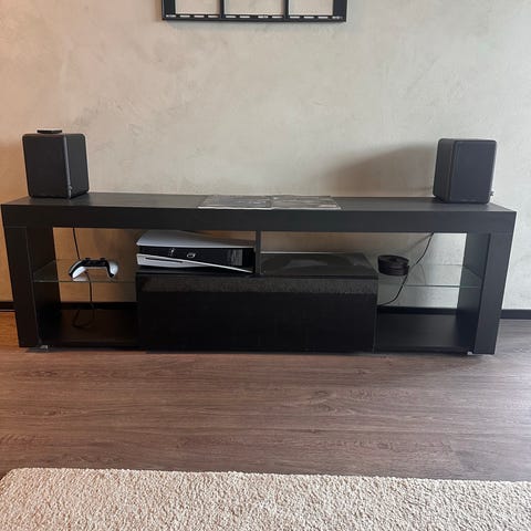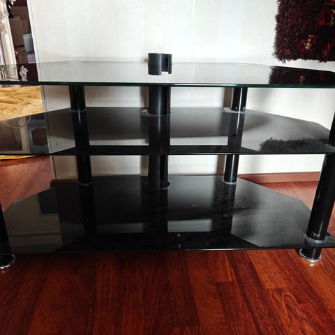 Hyväkuntoinen TV taso tms. Huonekalussa on kaksi lasiovellista kaappia ja keskellä kolme vetolaatikkoa. Sopii olohuoneeseen tai muuhun tilaan television tai muiden laitteiden säilytykseen. Pinta sisältää tahran, joka voi lähteä pois. Jalan korkeus on 10 cm mikä mahdollistaa esim robotti-imurin alle pääsyn. Vain nouto uuraisilta