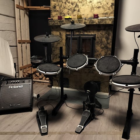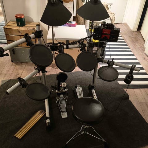Sopii musiikin harjoitteluun ja äänitykseen kotikäytössä. Kuin uudet ja olleet vähässä käytössä, en ole itse soittanut niillä vähään aikaan ja ovat olleet vain pölyyntymässä joten päätinpä myydä. Testasin äsken ja toimivat erinomaisesti, ei mitään vikoja. Monitorista voi halutessaan muokata rumpupadien ja -symbaaleiden soundia ja vahvistimesta saa monitorin kautta kuulemaan myös metronomin eli muusikoiden kesken "klikin". Setin saa myös helposti osiksi ja kompaktisti kasaan, jottei veisi paljoa tilaa esim. kuskatessa.
