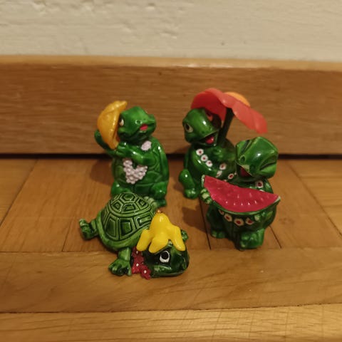 5 kpl Kinder-munien leijona-figuureja 90-luvulta. Vain nouto Tapiolasta.