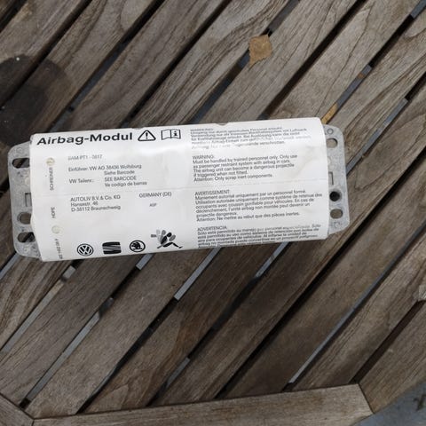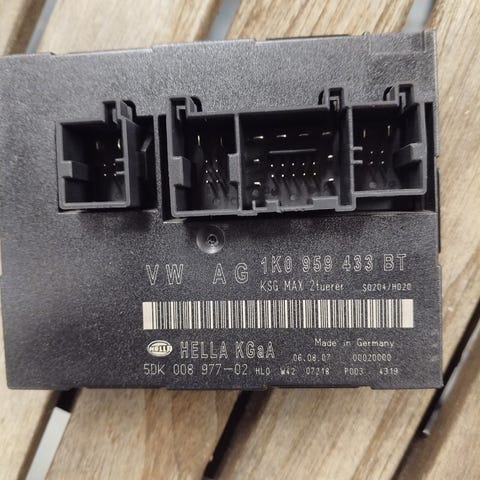 Volkswagen Airbag-ohjainlaite, malli 5WK43411, valmistettu Saksassa. Tuote on suunniteltu ajoneuvojen turvatyynyjärjestelmiin.