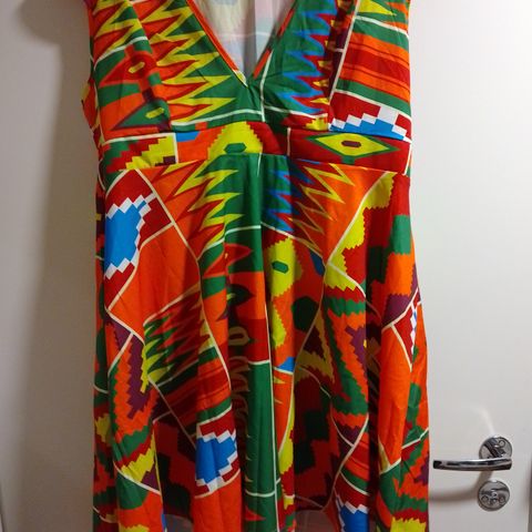 Kerran tai pari käytössä ollut hyväkuntoinen mekko. Kokolapussa 44, mutta oli itselle sopiva M/L-40/42 koossa. Alimman napin kohdalla kangasta hieman purkautunut, ei vaikuta käyttöön.