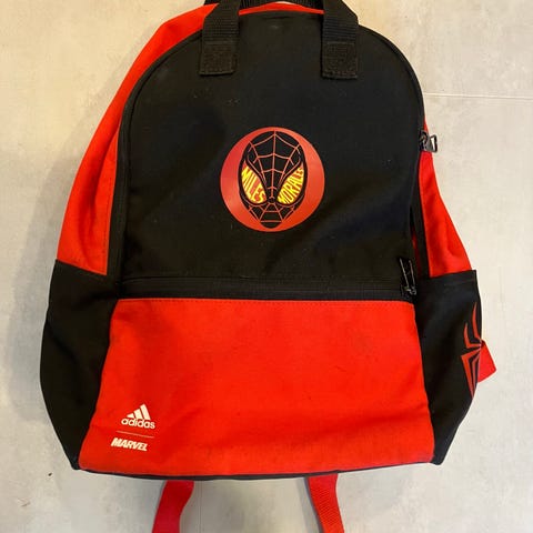 Myydään Adidaksen Marvel reppu. Suoraa käytöstä, valkoisessa vetoketjussa näkyy jotakin tummentumaa. Säädettävä rintaremmi, säädettävät pehmustetut olkahihnat.
