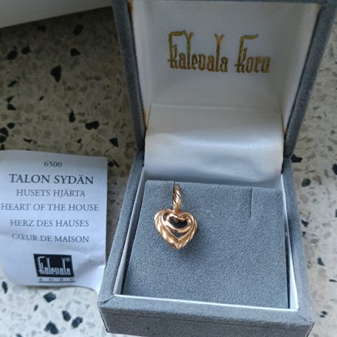 Kalevala talon sydän riipus kultaa. Leimat kk ja 585.