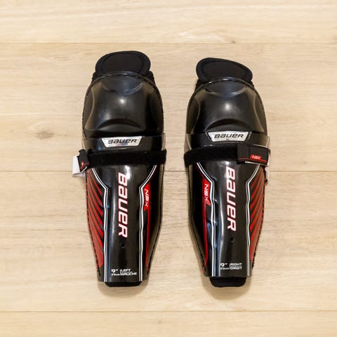 Reebok lasten säärisuojat jääkiekkoiluun, koko 9’’ 23 cm. Tarranauha kiinnitys. Käytetty. Nouto.