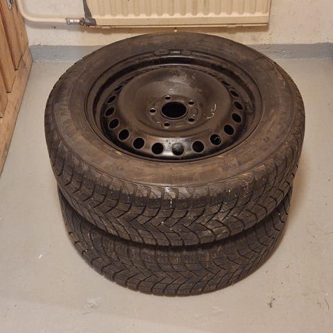 Kitkarenkaat pari vanteilla, Continental VikingContact 7 205-60-16. Pintaa noin 4,5 mm. DOT 2920 ja otettu käyttöön 10/2020. Ajettu vain talvikaudella.