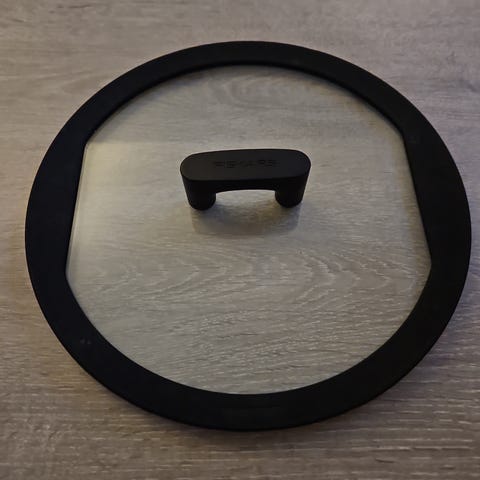 Fiskars kattilan tai kasarin lasikansi. Halkaisija n. 29,5cm