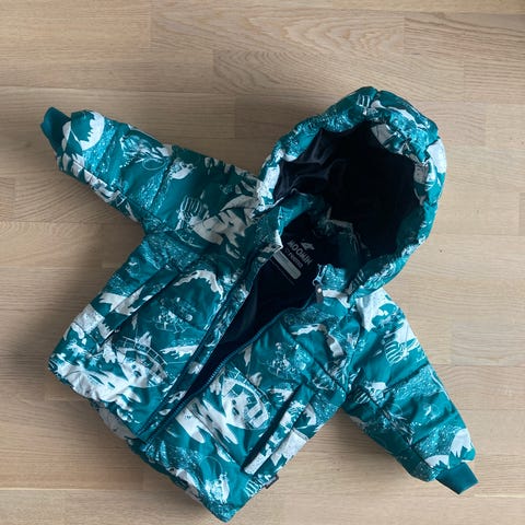 Lasten kevyttoppatakki, koko 80. Moomin characters merkkinen takki, jossa edessä kaksi taskua ja kiinteä huppu. Ehjä ja siisti takki.