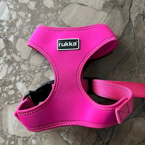 Enemmän käytetyt jo,mutta ehjät ja toimivat. Valjaat kokoa M eli menee pienelle koiralle.