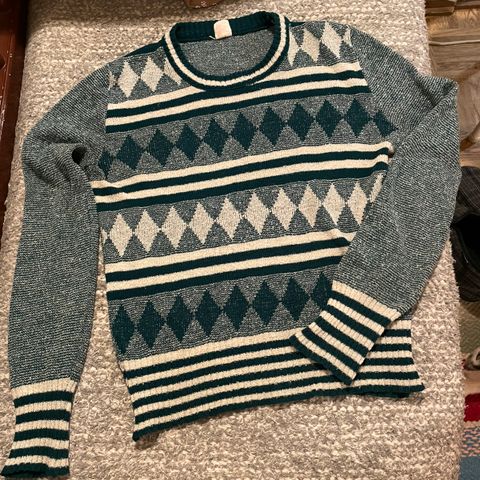 Ehta retroneule, josta olkatoppaukset irrotetut. Hartialinja silti skarppi. Hihat vajaamittaiset. Hieman haitua ja nyppyä.