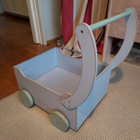 Täysin ehjät puiset nukenvaunut.