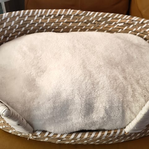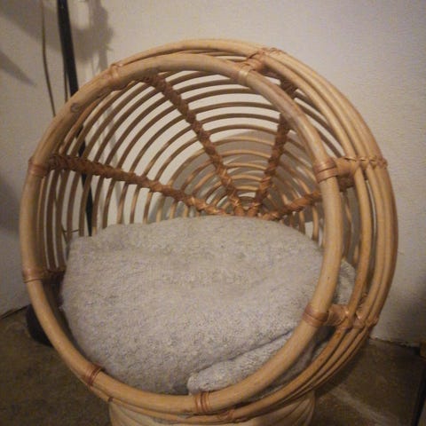 Mustista ja Mirristä ostettu rottinkinen lemmikin peti. Sopii kissalle tai pienelle koiralle. Pehmuste koriin ei ole enää tallella.