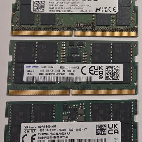 Toimivia DDR5 So-Dimm muisteja 2kpl. Olisi myös kolmas muttei identtinen näiden kanssa. Myös parit 5600Mhz myynnissä.
