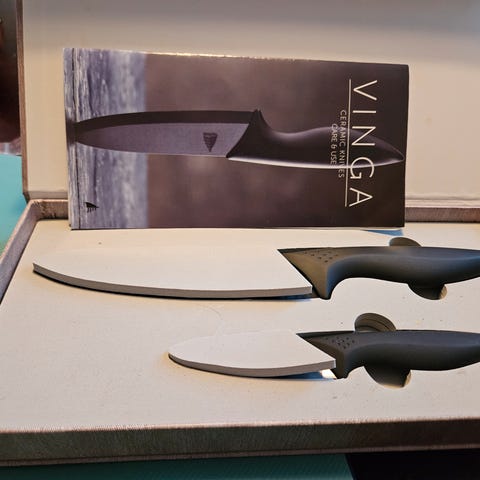 Myydään käyttämättömät Vinga leikkuu/tarjoilualusta ja veitset. Alkuperäisissä laatikoissa säilytetty, otettu ainoastaan kuvauksen ajaksi pois laatikoista. Leikkuu/tarjoilualusta valmistettu FSC®-sertifioidusta akaasiapuusta.