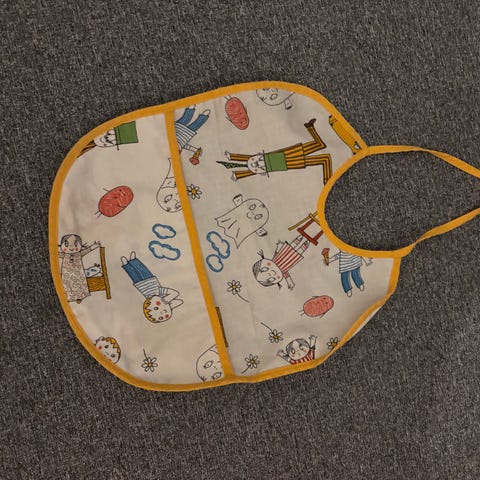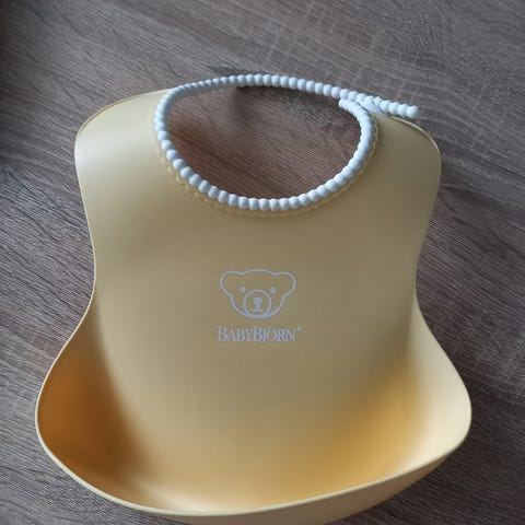 Sininen ruokalappu käyttämätön mutta sisältää pieniä naarmuja