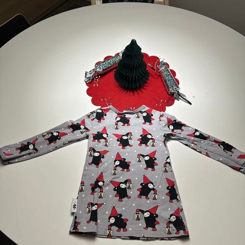 Paapiin pusero koko 98, ompelijan tekemä Herttanen Hilda kuosista. Kivana yksityiskohtana rusetti olkapäällä. Hyvässä kunnossa.