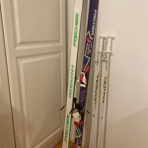 Myydään Fischer laskettelusukset 106cm ja monot. Sisämitta 22cm.
