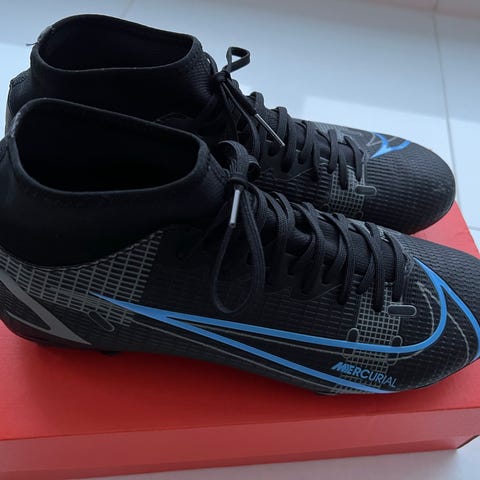 Nike Mercurial Superfly pro fg jalkapallokengät musta väri, koko 41 (UK 7, EUR 41, CM 26). Kengät on valmistettu synteettisestä materiaalista. Malli on suunniteltu jalkapallon pelaamiseen ja tarjoaa nilkkatuen korkean kauluksen ansiosta. Pelattu yhden kerran, oli liian pienet.