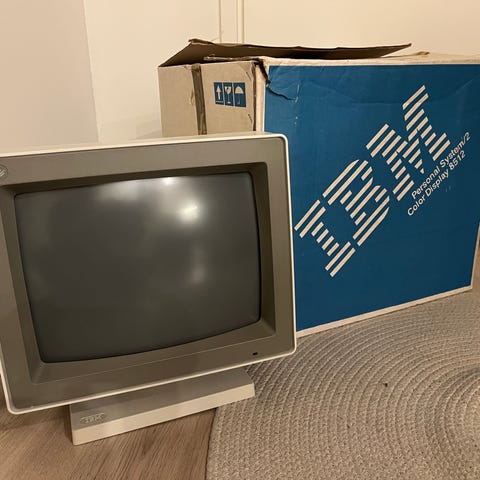 Myytävänä hyväkuntoinen Samtron 96P, eli Samsungin valmistama 19-tuumainen CRT / kuvaputki. Näytössä kiinteinä johtoina virtakaapeli ja VGA.