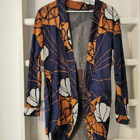Myydään kukallinen Noshin Vuolas neulejakku, koko xs, sivutaskut.