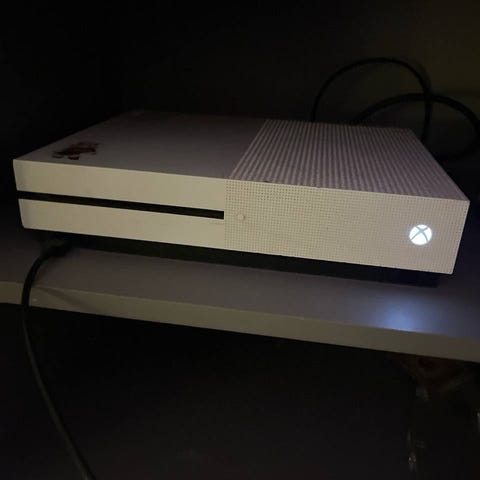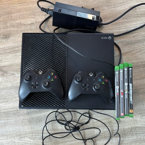 Microsoft Xbox One pelikonsoli, musta. Sisältää pelikonsolin, yhden langattoman ohjaimen ja virtalähteen. Muistia 500 Mt. Mukaan kolme peliä, The Crew, Rocket League Collector's Edition sekä Farming Simulator 19 premium edition.
