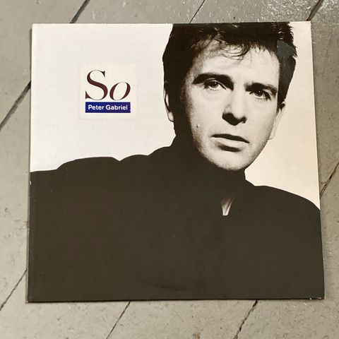 Peter Gabriel So LP-levy, jossa on albumin kansitaide. Levy on fyysinen äänite, joka sisältää Peter Gabrielin musiikkia.