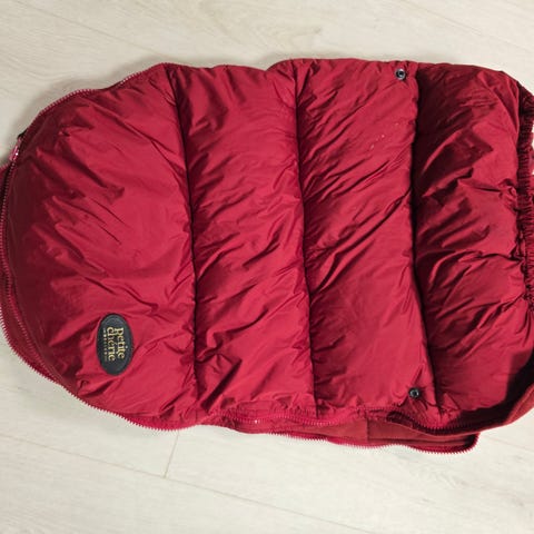 Lämmin Petite Chérien lämpöpussi. Lämpöpussin päälliskangas on tuulenpitävää ja vettähylkivää polyesteriä. Sisäosassa lämmin fleecevuori. Irrotettavassa hupussa on pehmoinen, irrotettava karvareunus. Karvareunus auennut toisesta reunasta ja lenksut lähteneet, kaikki napit tallella. Lämpöpussissa on aukot viisipistevaljaita varten. Pussissa on kaksi vetoketjua, joiden avulla pussin ”kannen” voi irrottaa kokonaan.