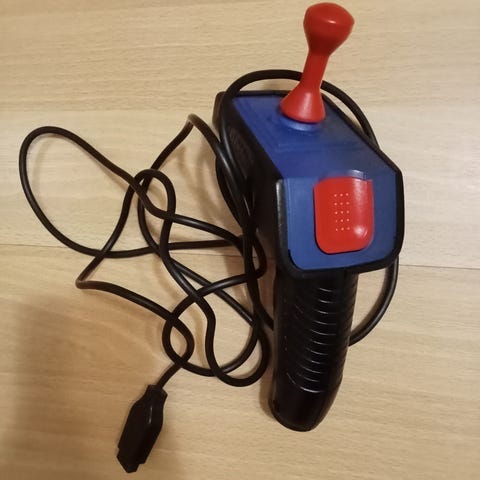 Klassikkojen klassikko joystick retrokoneille. Toimii hyvin, ottaa herkästi suunnat ja napitkin pelaa. Naarmua on, näkyy hyvin kuvissa.