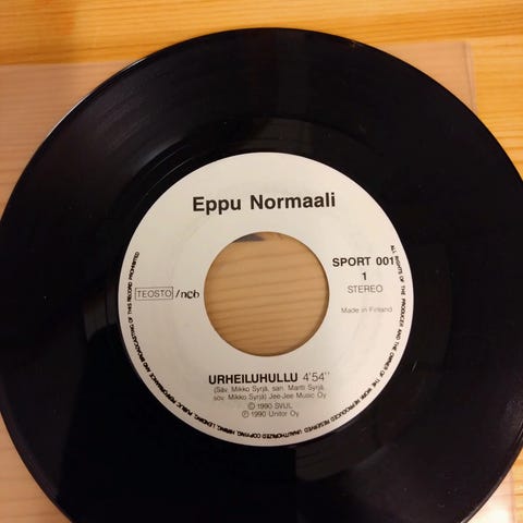 Eppu Normaali Intiaani Odottaa vinyylilevy. Levyn kansi on musta, jossa on punaisia ja valkoisia tekstejä ja kuvia. Takakannessa on kuva esiintymislavalla olevista muusikoista punaisessa valaistuksessa.