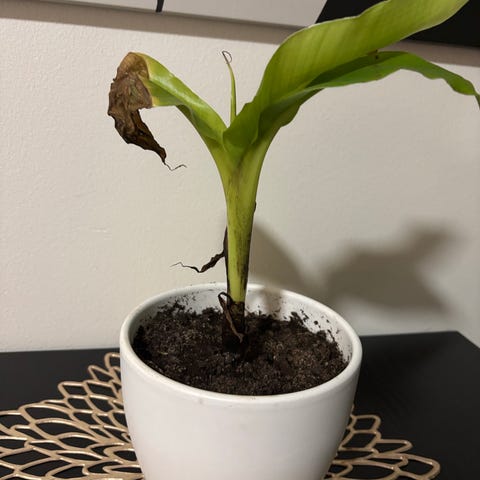 Gran Canarialta aito platano banaanipuun verso. Ruskeassa ruukussa