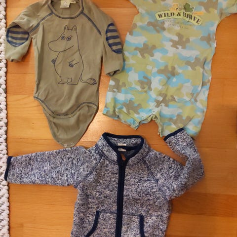 Ikean kassillinen ehjää ja puhdasta vaatetta vauvalle. Kassissa on yhteensä 34 vaatetta joista 16 on bodyja. Paketissa on myös kaksi fleecehaalaria joista toinen on Reiman haalari. Kassissa on vaatetta laidasta laitaan, housuja, paitoja, bodyja, sukkahousuja, parit muumisukat, muutama pipo ja topparukkaset. Osaa vaatteista ei ole käytetty ja kaikkien kunto on hyvä.