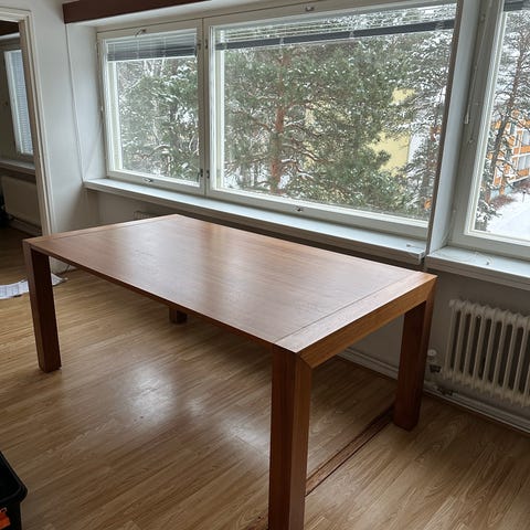 Annetaan hyvä kuntoinen pidennettävä ruokapöytä ja kaksi tuolia