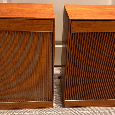 Finlux 8453 Vintage 3-tiekaiuttimetValmistaja: FinluxMalli: 8453 VintageTakapaneelissa merkintä : 45 W 4 ohmiaMitat (LxKxS): noin 28,0 x 43,0 x 24,5 cmPaino: noin 7,3 kg per kaiutinVäri: ruskea, tummanharmaaKaiutinkaapeissa pientä kulumaa ja pieniä kolhuja.Kierrätyskeskuksen tarkistama laite