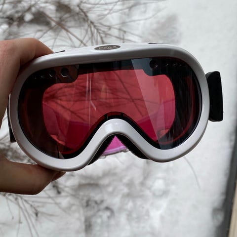 Retro suksipussi Nissan Karhu Matrix ja laskettelulasit kasarilta
