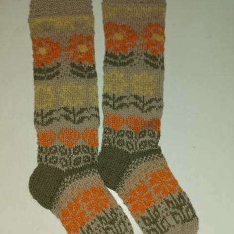 Villasukat Nako villasekoitelangasta. Varren mitta 35 cm ja jalkaterä 26 cm. Postikulut 6e paketti (mahdollisuus yhdistää muutakin) tai vaihtoehtoisesti Toridiilin kautta.