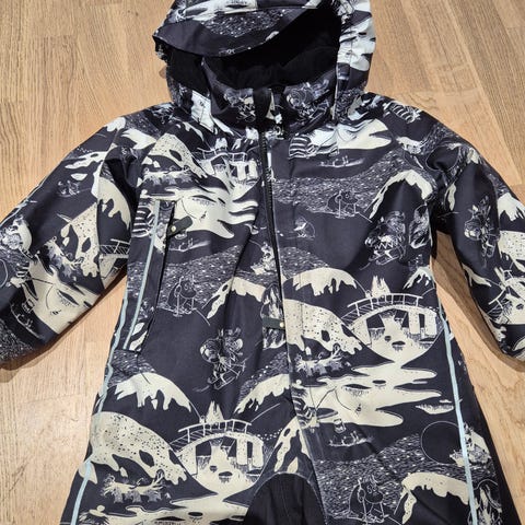 Käytetty Reima verkkokauppatuote. Reima Moomin Lyster -haalari talven Muumi-kuosilla. Haalarissa on irrotettava huppu, pitkä vetoketjukiinnitys ja joustovyötärö. Kumiset jalkalenkit (yksi puuttuu), yksi rintatasku ja heijastavia yksityiskohtia. Kankaan alkuperäinen vedenpitävyys on 10 000 mm vesipilarin arvo. Materiaalit: pinta, vuori ja eristys: 100 % polyesteriä, kalvo: 100 % polyuretaania Kangastyyppi: ulkoilukangas Perusväri: sininen Valmistusvuosi: 2022 Tuotenumero: 5100011A Tekniset ominaisuudet koskevat uusia tuotteita.(Second hand -tuotteiden tuotekuvaukset tarjoaa kierrätyskumppanimme Ninyes. Tekstit on käännetty suomen kielelle tekoälyn avulla.). HUOM! Verkkokauppatuote. Tuote tilattavissa vain Reima verkkokaupasta.
