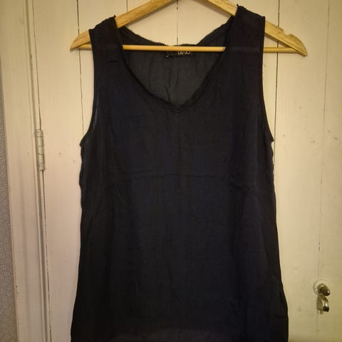 Mustavalkoinen edestä napitettava tyköistuva toppi, kunto erinomainen.
